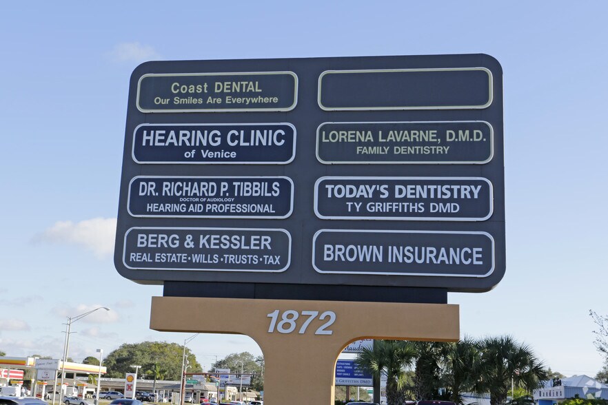Located on high-visibility S. Tamiami Trail (US-41) in Venice, this office unit offers excellent exposure and easy access to I-75, Center Road, and Downtown Venice. Surrounded by professional offices, medical users, retail services, and dense residential neighborhoods, the location supports strong daily traffic and long-term demand for office users. Professional, End Unit Office Condominium Unit located on Tamiami Trail in Venice with exposure to over 45,500 vehicles per day. Suite could be used for General Office and features a storefront entrance into a reception/waiting room, administrative office, 5 private offices/treatment rooms, 2 private restrooms and plenty of storage. Previous use was a medical office and each treatment room features cabinetry and counters with sinks.