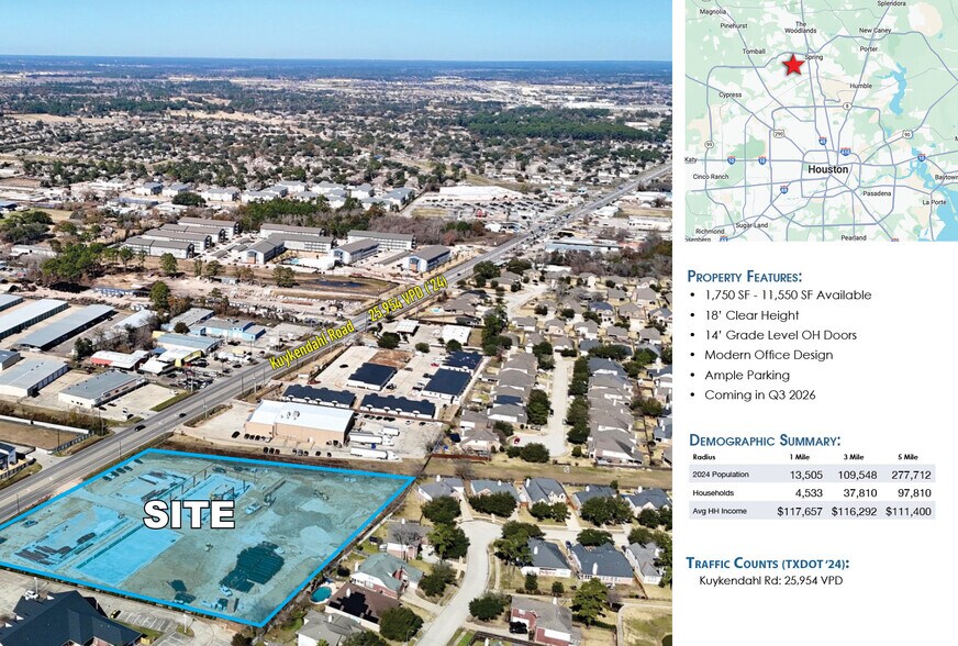 Modern design with 10% office build out 1,750 - 11,550 SF available Clear Height: 18 feet Overhead Doors: Grade, 14 feet Insulated warehouses Land: 4.27 Acres