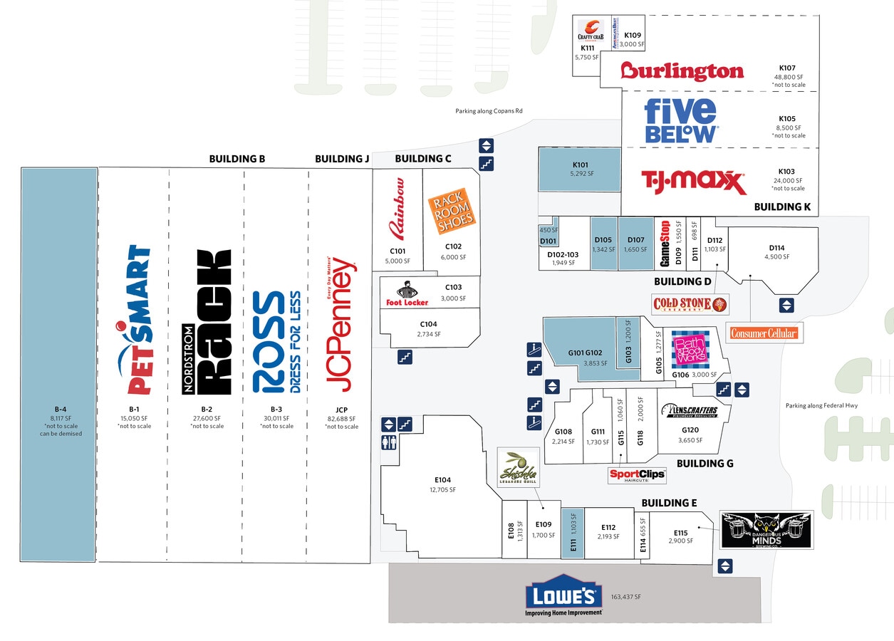 Le Pompano Citi Center est un centre de puissance haut de gamme. La propriété est ancrée par Lowe's, JCPenny, Burlington, TJ Maxx, Ross Dress for Less, Petsmart, Big Lots et Five Below, et constitue la plus grande masse critique d'espaces commerciaux du nord-est du comté de Broward. L'établissement est situé dans un emplacement stratégique le long de l'autoroute fédérale (US-1). Cette propriété unique attire le regard et a été parfaitement entretenue. Le site a 327 pieds de façade sur la North Federal Highway. L'établissement est accessible par trois points d'entrée/sortie situés du côté est de la Federal Highway.