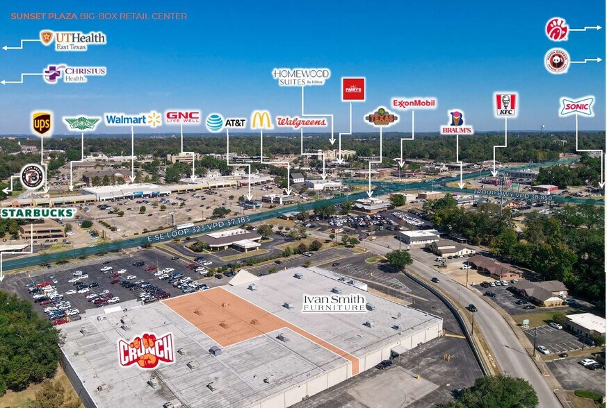 Sunset Plaza est un centre commercial animé situé à proximité du Loop 323, offrant une grande visibilité et un accès facile. Animé par des locataires de premier plan tels que le Crunch Fitness #2 le plus fréquenté du Texas et Ivan Smith Furniture, il propose une expérience de magasinage dynamique. Grâce à son emplacement privilégié et à la diversité de ses locataires, le Sunset Plaza est une destination de choix pour les entreprises comme pour les clients.