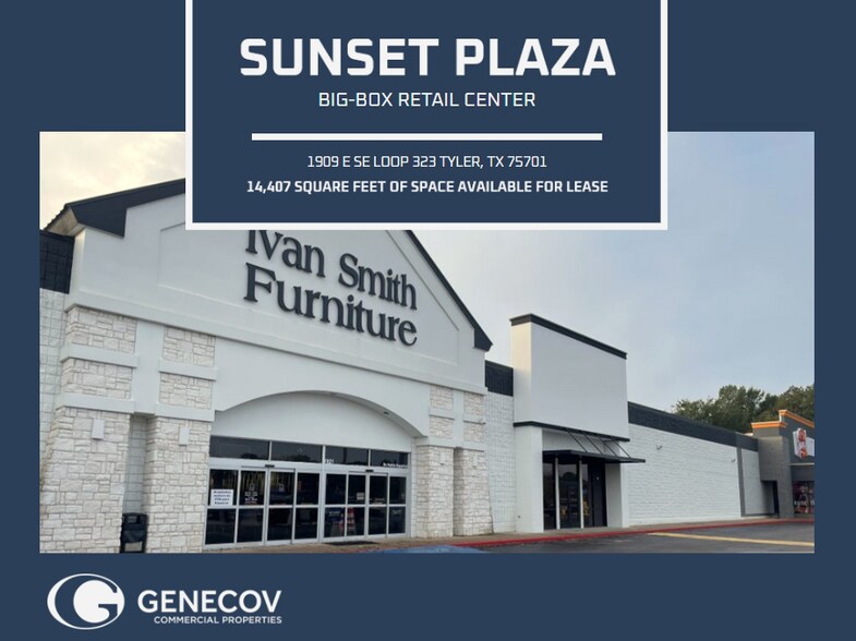 This 14,000 SF space at Sunset Plaza offers high visibility and an ideal location off Loop 323. Positioned alongside the #2 busiest Crunch Fitness in Texas and Ivan Smith Furniture, the space is a prime opportunity for an anchor tenant. With tall ceilings and a blank canvas design, it provides the flexibility to tailor the space to meet diverse business needs.