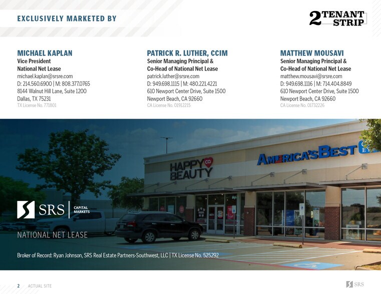 • America’s Best Contacts & Eyeglasses lease is signed by National Vision, Inc., an investment-grade tenant (S&P: A) with a market cap exceeding