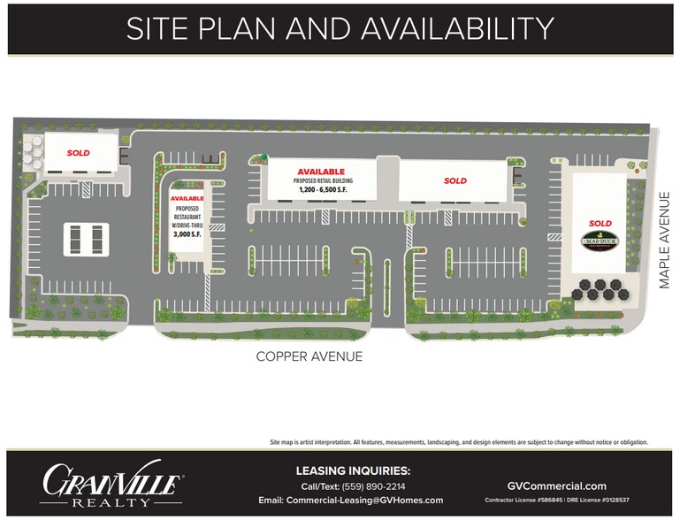 Ce bâtiment commercial de classe « A » a été développé par Granville Homes à Fresno. Le « bâtiment B » sera construit en 2023. Les suites se louent rapidement. Square Foot peut accueillir entre 1 200 pieds carrés et 6 500 pieds carrés d'espace ouvert, parfait pour les bureaux, les commerces de détail, les restaurants ou autres. À l'angle nord-ouest des avenues Copper et Maple, dans le nord-est de Fresno, à côté de la communauté planifiée de Copper, River Ranch