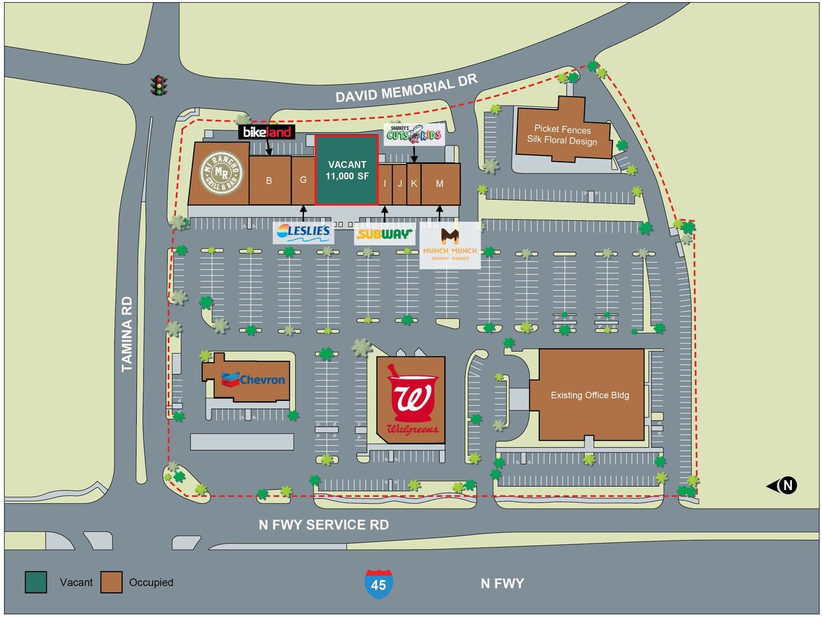 Research Plaza est un centre commercial de quartier de 34 924 pieds carrés situé à Shenandoah, au Texas, juste à l'extérieur de The Woodlands. Le centre dispose d'un grand parking, d'un panneau de signalisation et d'une forte colocation. Il bénéficie d'une visibilité exceptionnelle depuis l'I-45 North.