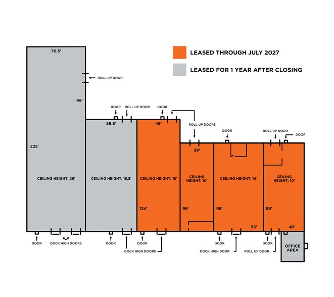 ?The building offers ±45,400 RSF of highly affordable industrial warehouse space, consisting of several clear span bays of various sizes (please see property details + floor plan for specifics). Half of the building is occupied until 07/27. The seller will sign a new one-year lease for the remaining space upon the sale of the building.