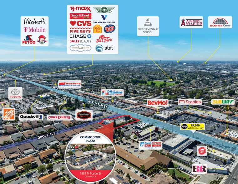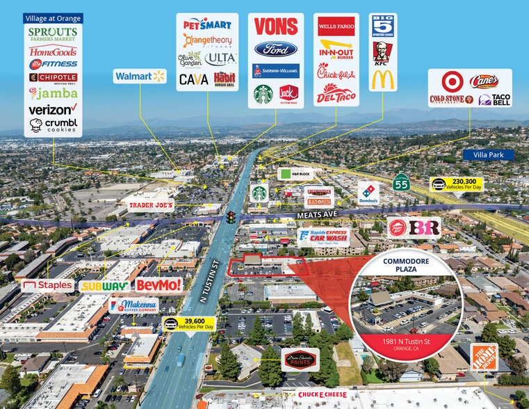 - A+ Location on Tustin Street – Central Orange County - High Traffic Retail Location - Over 39,600 VPD - Adjacent to 55 Freeway - Over 230,300 VPD
