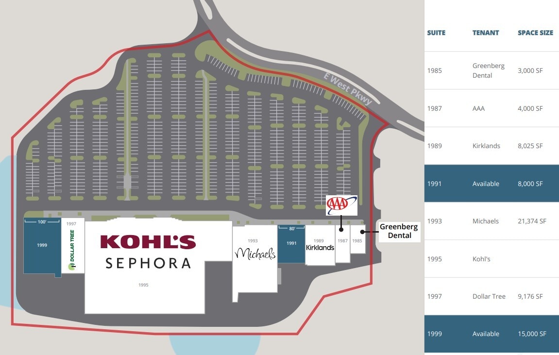 Situé au cœur de Fleming Island, ce centre commercial dessert les quartiers aisés et les communautés environnantes, avec des revenus moyens des ménages supérieurs à 140 000 dollars. Situé à l'intersection signalisée de la E West Parkway et du corridor très fréquenté de la CR 220, le centre bénéficie d'une visibilité et d'une circulation excellentes. Il est ancré par de grands détaillants tels que Kohl's, Sephora et Michaels, ainsi que par d'autres locataires à proximité tels que The Fresh Market, Publix, Target, Home Depot et Walmart. La région compte également une forte population diurne, grâce à sa proximité du Baptist Medical Center Clay et de la base aérienne navale de Jacksonville, ce qui en fait une destination idéale pour les résidents et les navetteurs.