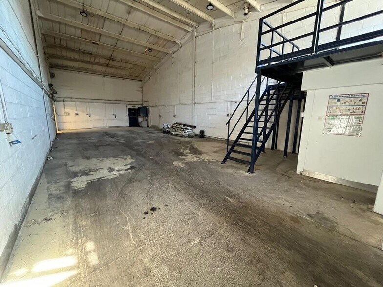 The two mid-terrace units are of steel portal frame construction with brick and block elevations beneath a pitched roof incorporating translucent roof lights. Both units benefit from a roller shutter door measuring approximately 2.9m wide by 4.3m high, together with a reception area, WC facilities, three-phase power and a mix of LED and fluorescent lighting. Unit 3 has a ceiling height of approximately 2.5m (under mezz) and includes first-floor offices and a large mezzanine floor. Unit 4 benefits from a smaller mezzanine area and has an eaves height of approximately 5.1m rising to an apex of approximately 6.8m. Externally, there is a concrete forecourt providing ample loading and unloading space, together with six parking spaces (three per unit) opposite the premises. The units are currently interlinked but could be reinstated to provide two self-contained units.