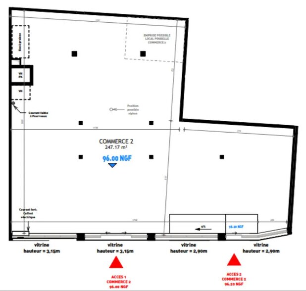 | Espace total disponible | 248 m² | Surface commerciale utile | 248 m² |
