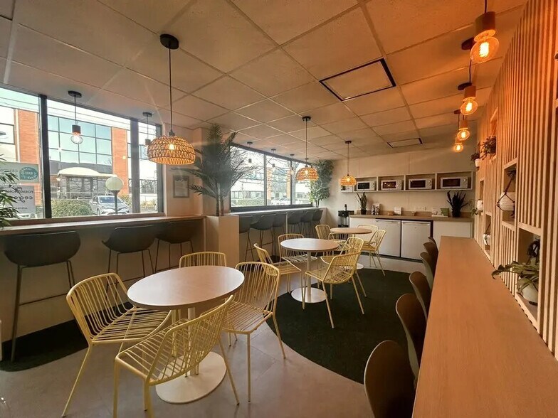Les espaces intérieurs comprennent plusieurs bureaux fermés ainsi que plusieurs salles de réunions, permettant d'organiser les activités de travail collaboratif et les espaces individuels. Le bâtiment dispose également d'un espace cafétéria, offrant un lieu dédié aux pauses et aux échanges informels entre collaborateurs.