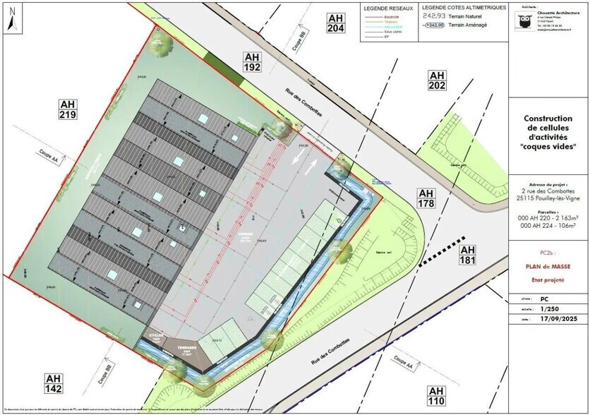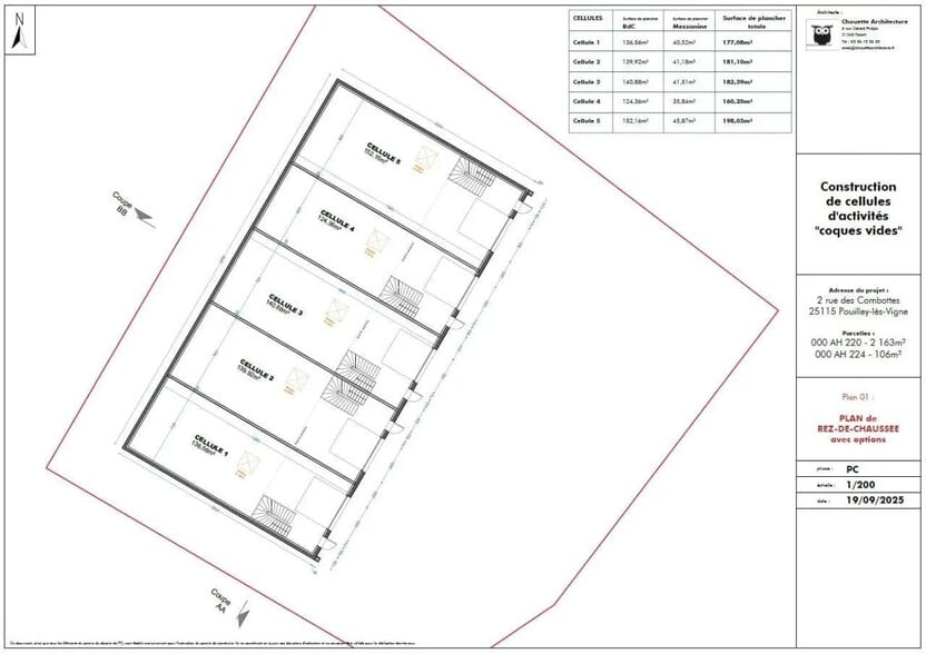 POUILLEY LES VIGNES Dans un ensemble immobilier neuf à construire, 5 cellules à vendre avec surface en rez-de-chaussée et mezzanine. Lots de 168 m², 185 m² et 206 m² environ. Places de parking privatives pour chaque lot. A VENDRE Cellules à partir de 168 m² POUILLEY-LES-VIGNES Bâtiment d'activité neuf - 5 Cellules - Livraison 2ème semestre 2027. Ce programme propose 5 cellules pour les artisans et les petites et moyennes entreprises cherchant un emplacement pratique dans le Grand Besançon. Situé sur un terrain clos, végétalisé avec de nombreux espaces verts et un accès aux Personnes à Mobilité Réduite (PMR), ce bâtiment neuf proposes des cellules livrées brut de béton (dalle quartzée) offrant 7 mètres de hauteur libre, un accès de plain-pied par porte motorisée, ainsi que des compteurs individuels et fluides en attente (électricité et évacuation). Le bâtiment est équipé de 13 places de parkings dont une place de parking pour les personnes à mobilité réduite, pré équipement pour véhicules électriques ainsi que stationnements vélos. Le site met l'accent sur la durabilité avec la végétalisation du site, la récupération des eaux de pluie, des espaces extérieurs aménagés et une charpente en bois. Installation de panneaux photovoltaïques en toiture, permettant de satisfaire au minimum réglementaire, avec une solution privilégiant l'autoconsommation et/ou injection. Un emplacement stratégique et accessible L'implantation à Pouilley-les-Vignes permet de travailler au calme tout en restant proche des grands axes : Besançon à 23 minutes Accès autoroutier : l'échangeur de l'A36 (Besançon ouest) se trouve à 8 minutes, ce qui facilite les liaisons vers Dôle, Dijon ou Montbéliard. Les services de proximité immédiate Le coeur du village de Pouilley-les-Vignes offre tous les services nécessaires à moins de 2 minutes à pied, tels que restauration, commerces, agences bancaires, etc