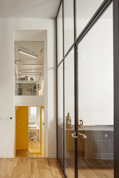 Local indépendant de 38 m² plus 32m² d’espaces communs partagés avec une agence d’architecture Au cœur du sentier, entre métro Sentier et Bonne nouvelle, à proximité des commerces des rues Montmartre, Montorgueil et des grands boulevards. Un grand espace pouvant accueillir 6 postes de travail individuels + 3 ponctuels (38m²), un espace serveur, des sanitaires et un espace de rangement/stockage + 1 cuisine / salle à manger partagée de 16 m² + 1 salle de réunion partagée de 17 m² Entrée partagée Chauffage central, alarme et équipé en réseau informatique Loyer : 1600€ HT par mois Charges, chauffage, électricité, fibre, alarme, ménage hebdomadaire et fournitures associées : 200 € HT par mois Total 1800€ HT par mois Possibilité de louer meublé avec des bureaux blancs de 80x160cm Bail de sous location (professionnel) Caution : 2 mois de loyer HT Pour visiter, envoyer un mail à l’adresse : 9ruedusentier@gmail.com sanitaires indépendants