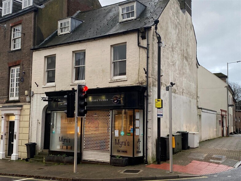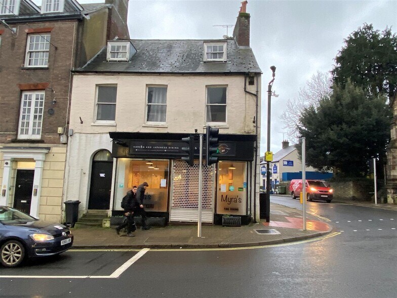 The premises currently comprise a cafe/restaurant over 2 floors with room for approximately 40 covers on ground floor with fitted kitchen and customer WC's to the rear. There is a basement that is currently used for storage but has been used for seating in the past. Air conditioning/heating. Garden/carparking space to the rear. Approx 1,173sqft over the 2 floors. 20 High East Street is a long established commercial location with a mix of public houses, hotels, shops, restaurants and takeaways The premises are directly opposite Woods furniture store and close to the Kings Arms Hotel. The premises are situated on the corner of High East Street and Church Street (leading into Acland Road/Charles Street) which is a highly prominent junction in this position. High East Street/High West Street is the old Roman road passing through east/west through the town from London Road to the east and Bridport Road to the west. Simply follow this road through and the property is 100m east of the Corn Exchange/Cornhill junction.