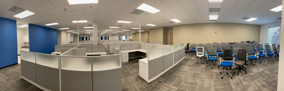 - Flexible floor plan provides open collaboration areas, a call center or training space, and private offices to support various business functions.