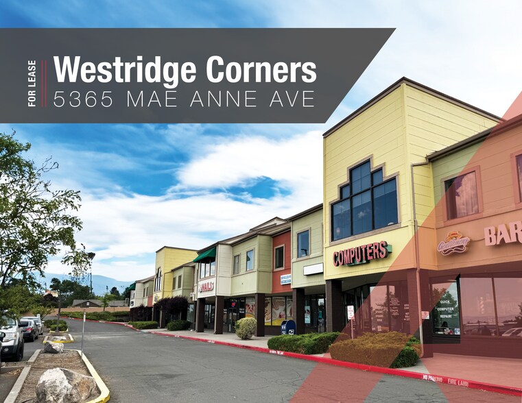 Westridge Corners est situé dans le nord-ouest de Reno, à proximité de quartiers résidentiels à forte densité et de développements commerciaux de premier ordre. L'établissement offre un accès facile à l'I-80 et au boulevard North McCarran, avec une excellente visibilité sur l'avenue Mae Anne, une artère très fréquentée avec plus de ± 12 500 véhicules par jour. Les locataires du centre incluent The Original Bully's Sports Bar, Sushi Rose, Pizza Plus, ainsi que de nombreux autres prestataires de services médicaux et généraux.