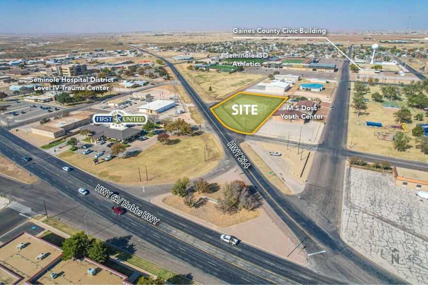 Ideally located just off the North “Y”, where Hobbs Highway and Highway 214 converge, this local-retail-zoned parcel offers exceptional visibility and convenient access to major community destinations, including the Seminole Hospital District, Seminole ISD Athletic Facilities, and the Gaines County Civic Building. Located only one-third of a mile from Main Street/Highway 385, the site is ideally situated to attract steady traffic from both eastern New Mexico and the West Texas Permian Basin, making it an excellent opportunity for a wide range of retail or service-oriented developments.