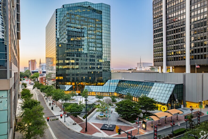 Cette prestigieuse tour de bureaux d'environ 280 000 pieds carrés située au cœur du centre-ville d'Orlando offre un excellent accès à l'Amway Center, au Dr. Phillips Performing Arts Center, au stade de football d'Orlando City et à l'hôtel de ville. De nombreux équipements sur place, notamment le centre de remise en forme Velocity by Highwoods Properties, le centre de conférence et de formation Spark by Highwoods Properties, la succursale Seaside Bank, un distributeur automatique de billets, un café, un service de nettoyage à sec, un service de réparation automobile et des bornes de recharge pour voitures électriques. De nombreux restaurants et boutiques sont accessibles à pied. L'Interstate 4 et l'autoroute East-West offrent un accès direct et facile à de nombreux endroits, notamment à 15 minutes en voiture de l'aéroport international d'Orlando.