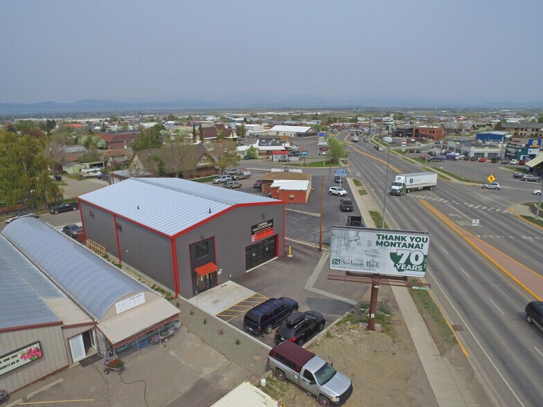 This commercial building will give your business maximum exposure with vehicle counts averaging around 18,000 per day for the last 10 years. Built in 2021, and only occupied for 3 years, this is flexible space that can be used for many types of businesses. Main floor space is 3,600 sq. ft. There is a mezzanine space that gives an estimated 1,200 more square feet of floor space, and the mezzanine could be expanded to create offices or more floor space. Ceiling height is 22' before the pitch. There are three garage doors: Small Back Door is 10x10, Large Back Door is 16x16, and the Glass Front Door is 18x10. Plenty of parking on Aspen Street in the back. Has A/C and a big shop heater. Back bay has separate baseboard heat.