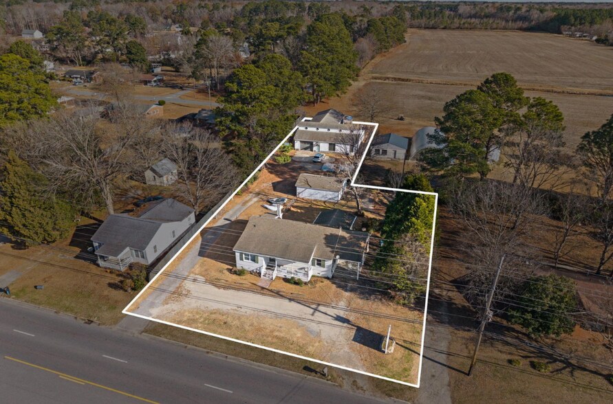 The front/main building—originally a 3-bedroom, 2-bath home—previously served as Shutters Direct's primary office. ADA accessible, it features designated parking and a RAM lift for easy access. With approximately 115 ft of road frontage just off US 264, the location provides excellent exposure and convenient connectivity between Washington and Greenville.