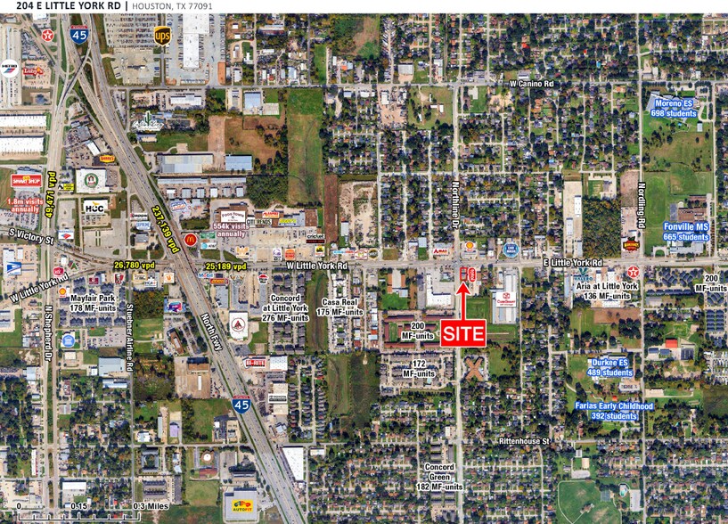 - Strong traffic exposure: 24,344 VPD (E Little York) / 6,636 VPD (Northline)