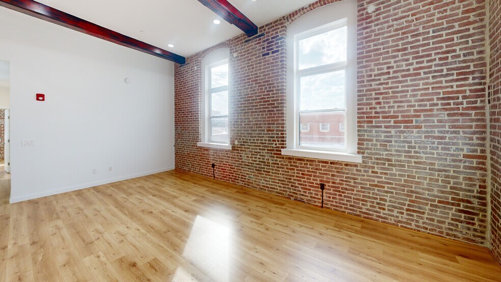 Just steps from Frankford Avenue, it features the perfect blend of spacious one- and two-bedroom apartments that blend modern design with industrial character, including exposed brick, beams, and ductwork, oversized windows, and ceilings reaching up to 18 feet, making them very easy to rent.