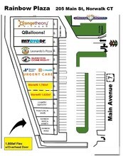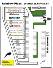 Rainbow Plaza est un centre de quartier, colocataire avec de nombreux locataires à long terme qui répondent à tous les besoins des clients : Leonardo's Pizza, Orange Theory Fitness, lunettes et examens MyEyeDr, dentiste, chiropracteurs, salon de manucure, épicerie, ballons de fête, crème glacée SunnyDaes, nettoyeur à sec et tailleur. Située à la frontière ouest de Norwalk et de New Canaan, Main Ave est un important corridor commercial et de bureaux, à proximité des écoles, le tout très facilement accessible depuis toutes les artères principales : I-95, Merritt Parkway, Route 1 et Route 7 Connector