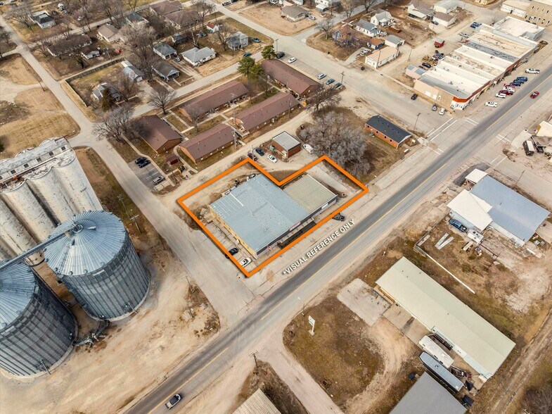 This commercial property at 205 Maple St, just off U.S. Highway 56 on Overbrook's main roadway, offers investors or owner-users a versatile 9,600 sq. ft. building. Previously a grocery store and full-service restaurant, it features ~4,100 sq. ft. restaurant/main area, 2,000 sq. ft. insulated storage (stubbed for bath, with two commercial refrigerated cases), and four new office/apartment flex units on the south end.