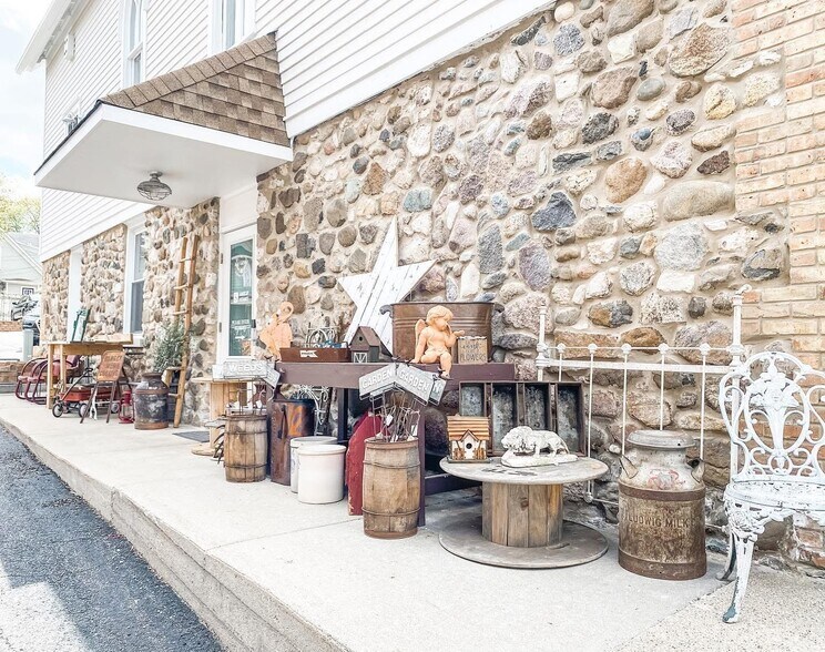 The first floor showcases beautifully refinished original hardwood floors, while the lower level features new luxury vinyl flooring and additional flexible workspace. Original architectural details have been carefully preserved, including restored wood window frames and functioning lift mechanisms, allowing the building’s historic charm to remain intact. A modern kitchenette, updated washrooms on each level, and all new LED lighting throughout provide contemporary functionality. The lower level has also been plumbed for an additional washroom, offering future expansion flexibility. The exterior of the building has received extensive restoration including tuck pointing, rebricked chimney work, refinished stonework, and a full exterior repaint using premium Sherwin-Williams paint. The property also features restored antique stained glass, enhancing its distinctive character. Additional major building improvements include: Carrier High Efficiency Furnace (2019, Roof Replacement (2015),Air Conditioning Replacement (2015),