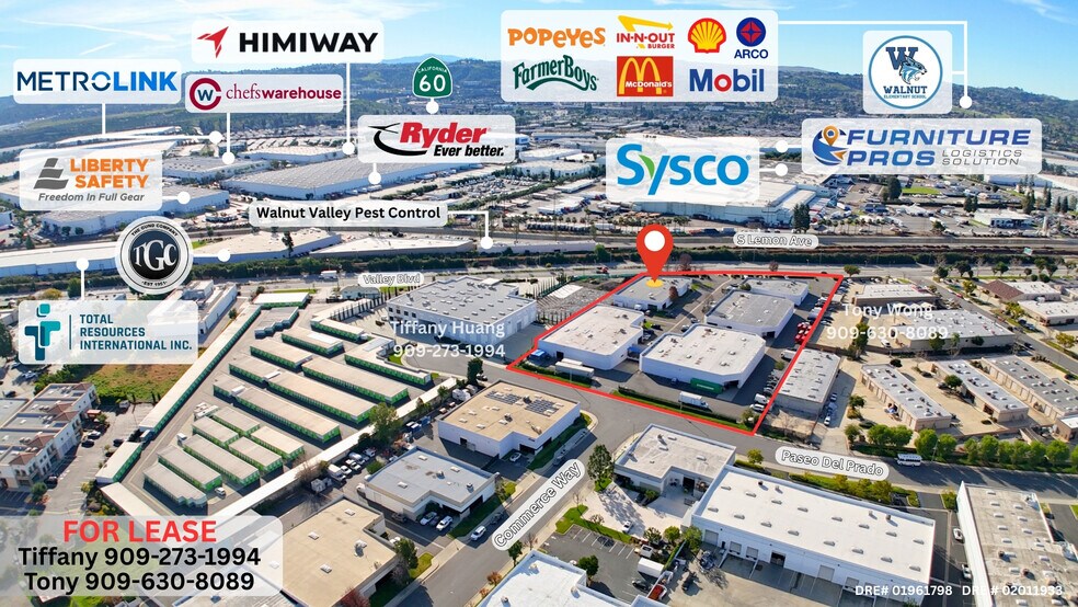 • Strong frontage along Valley Blvd with excellent visibility • Strong daytime population and consistent Local traffic flow • Average $120k Household Income • Surrounded by schools, Parks, residential neighborhoods, and Businesses • Excellent access to CA-60 & CA-57 • Flexible M-1 zone allows a wide variety of commercial, office, and Professional uses to serve residents, employees, and visitors. • Ideal for: Medical / Dental Office / Laboratory/ Tutoring / Beauty / Wellness services / Central Kitchen / Trade School / Music school / Art school / Professional office • 1 Reception, 5 offices, 1 Conference room, 1 Lunch room, and 1 bathroom • CALL/TEXT: Tiffany 909-273-1994 | Tony 909-630-8089