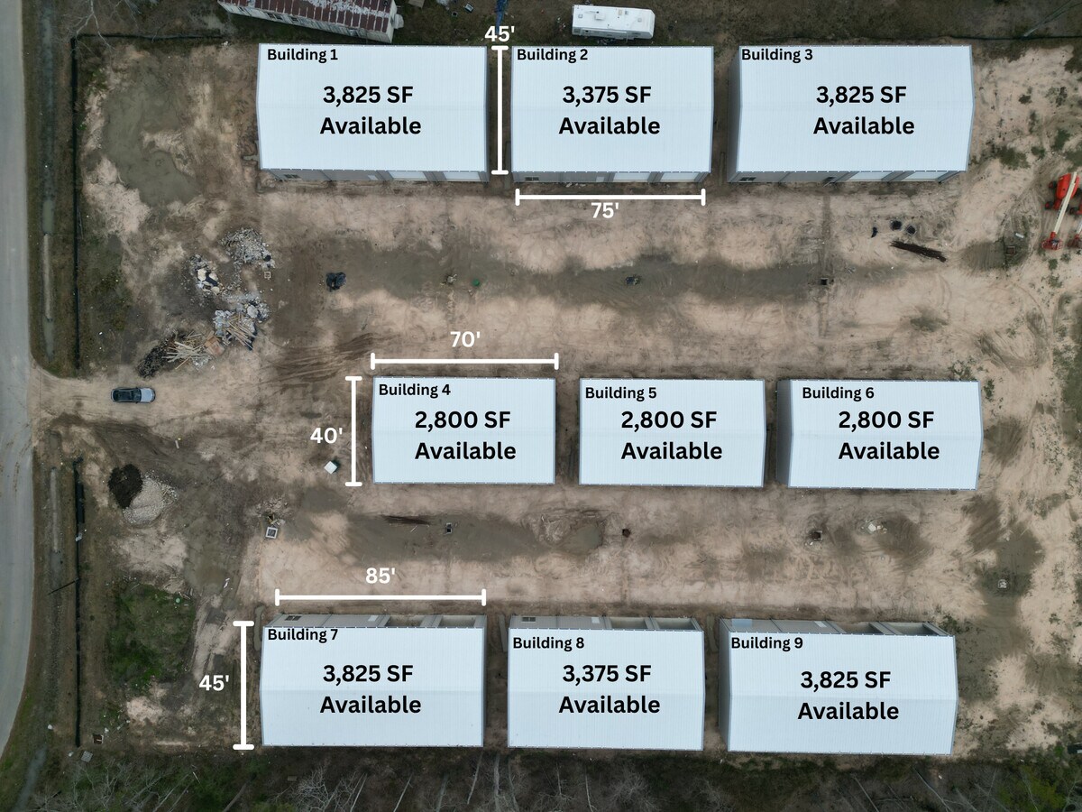 Now available for purchase or lease, this industrial warehouse business park in Porter, Texas offers an excellent opportunity for investors and owner-users seeking exposure to the Greater Houston, Texas market. The property features multiple buildings with flexible configurations, including Buildings 4, 5, and 6 at approximately ±2,800 SF; Buildings 2 and 8 at approximately ±3,375 SF; and Buildings 1, 3, 7, and 9 at approximately ±3,825 SF. All buildings are equipped with 14’ x 14’ overhead doors and 16’ clear height, making them well-suited for warehousing, distribution, and light industrial users. The site is strategically located approximately 3 miles from US-59/I-69, 6 miles from TX-99 (Grand Parkway), and 12 miles from I-45, providing strong regional connectivity.