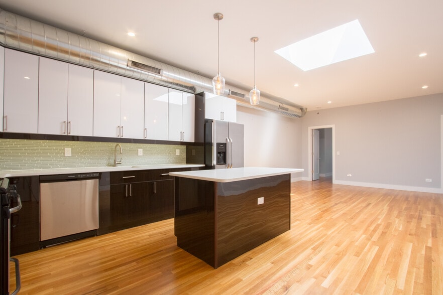 - Residential apts have exposed brick + ductwork, skylights, hardwood floors, washer/dryer in units.