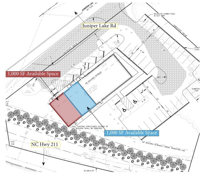 36 shared parking spaces 8 exam rooms with water 2 nursing stations File room Signaled intersection Highly visible along NC Hwy 211 corridor