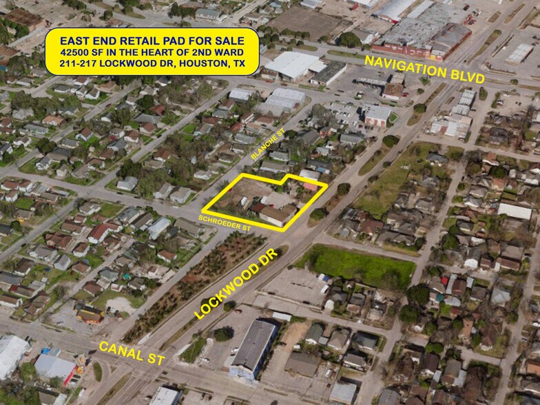 Ce terrain idéal et très visible de 42 500 pieds carrés situé dans le Greater East End de Houston convient parfaitement comme espace de vente au détail. Il est situé sur Lockwood, entre le canal et la navigation, et donne sur 3 rues. Le financement par le propriétaire peut être une option pour un acheteur qualifié.