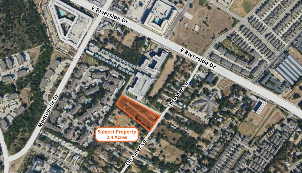 Le 2110 Thrasher Lane est une parcelle de développement de 2,4 acres parfaitement située au cœur du corridor East Riverside avec un accès facile à l'autoroute 71, à l'autoroute 183, à la TX-130, à l'I-35 et à Austin-Bergstrom. La propriété est située dans une zone d'opportunités et est entourée d'une croissance démographique expotentielle et d'importants employeurs. Taille : 2,4 acres (numéro de colis TCAD : 290504) Zonage : SF-6-NP - Maison de ville et résidence en copropriété Utilisations potentielles : maison de ville, condominium, duplex Infrastructure et services publics : Les conduites d'eau et d'eaux usées se trouvent à Thrasher Lane (la capacité et le service doivent être vérifiés de manière indépendante par l'acheteur). La rétention sur place offre aux développeurs une voie de développement plus rapide et moins coûteuse. Prix : 2 888 000$