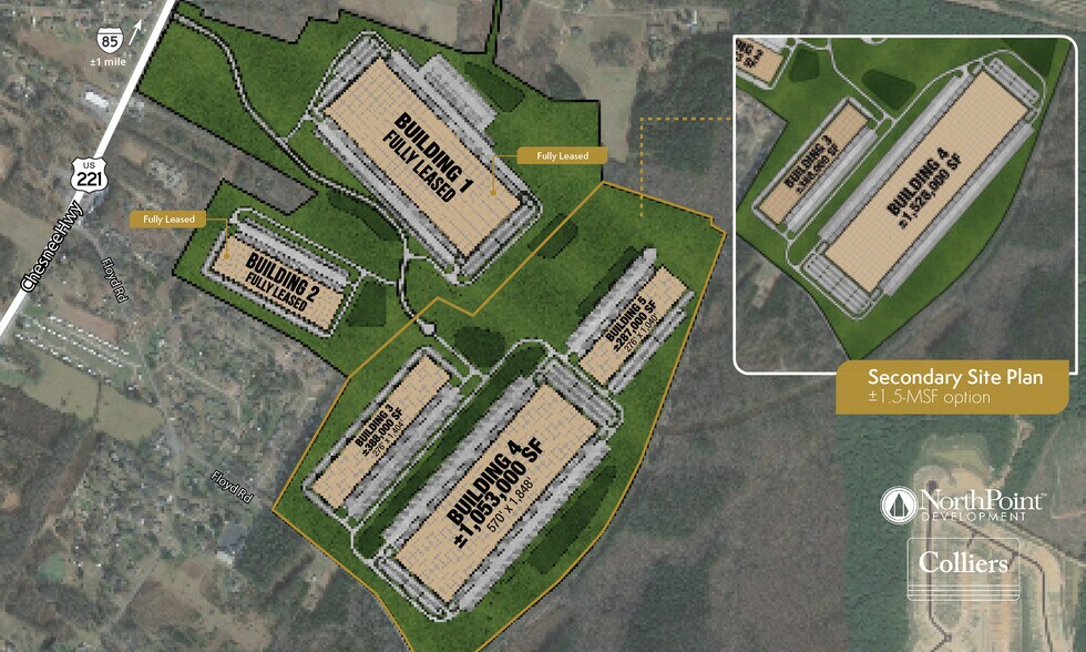 Le Spartan Enterprise Park est un parc industriel de 300 acres situé juste à l'extérieur du centre-ville de Spartanburg, en Caroline du Sud, avec un potentiel de construction industrielle de ± 3 pieds carrés. Le parc offre de multiples possibilités de construction flexible sur mesure ou d'espace spéculatif axé sur la rapidité de commercialisation. Le bâtiment 1, d'une superficie de ± 1 009 637 pieds carrés, est entièrement terminé et disponible pour occupation. Le bâtiment 2, d'une superficie généreuse de ± 324 633 pieds carrés, a également été achevé et est prêt à être occupé par les locataires. Avec l'un des ports intérieurs les plus actifs du sud-est situé à seulement 32 miles à l'ouest et un emplacement stratégique le long de l'I-85, dans l'un des couloirs de distribution en vrac les plus dynamiques du pays, Spartan Enterprise constitue une excellente opportunité pour les utilisateurs industriels de développer ou de relocaliser leurs activités.