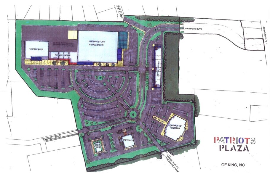 44,60 acres avec eau et égouts publics disponibles. 4 moyens possibles d'accéder à cette propriété. Campbell Ridge Circle, Timmy's Lane, rue Main et rue Five Forks. À distance de marche du Walmart Super Store, de Lowe's Foods, de Chick-fil-A, de Taco Bell, des églises et des boutiques. Emplacement possible pour une utilisation mixte. D'autres propriétés autour de cette propriété sont également disponibles à la vente. King, en Caroline du Nord, est une ville en pleine croissance située sur le nouveau corridor I-74, juste au nord de l'endroit où le nouveau périphérique ouvrira ses portes au début de l'année prochaine. King, en Caroline du Nord, se trouve à environ 25 à 35 minutes de l'aéroport international Piedmont Triad. Un rezonage est possible si nécessaire. Cet emplacement serait parfait pour une combinaison de maisons groupées, d'appartements, de maisons de ville, de commerces de détail et de restaurants.