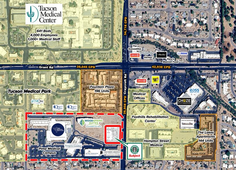 - Facing Craycroft Road, a major arterial carrying 28,958 CPD from highly affluent Catalina Foothills area to many Tucson employment centers including t