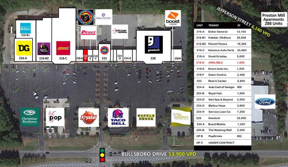• Espace disponible sur l'ancien grand terrain | 35 864 pieds carrés (peut être perdu). • Grâce à un solide mélange d'activités axées sur le commerce de détail, le fitness, la restauration et les services, il génère un trafic piétonnier constant. • Situé le long du principal corridor commercial de Newnan, entouré de grandes marques nationales et de générateurs de trafic quotidien. • Dans un marché en pleine croissance avec de multiples projets de développement résidentiel et commercial dans la région. • Chiffres de trafic : Bullsboro Drive (53 900 VPD)