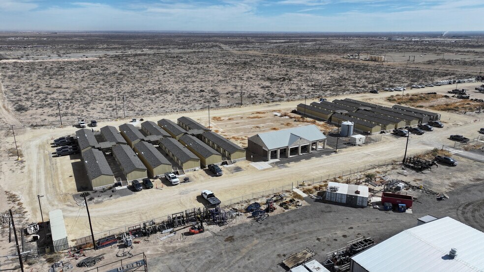 Pecos Farms offers a turnkey workforce housing opportunity designed to support the demands of the Permian Basin’s energy industry. The man camp is situated on ±12.9 acres fully fenced with an additional undeveloped 20 Acres behind the property. Featuring 115 private suites, each configured as a one-bed/one-bathroom unit, providing comfortable and efficient accommodations for employees. The property also includes a well-equipped common area with a fitness room, laundry facilities, vending area, and an outdoor BBQ/grill space. The additional acreage provides ample tractor/trailer parking. Pecos Farms presents an ideal solution for oilfield service companies, operators, or investors seeking dedicated housing for crews working throughout the region.