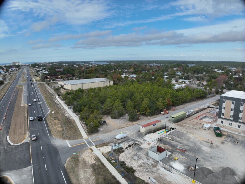 Excellente visibilité sur l'US Highway 98. Terrain d'angle de 2 acres, accès facile, 30 000 véhicules circulent quotidiennement, quartier le plus chaud de Panama City Beach. Ouvert et prêt pour tout nouveau développement.
