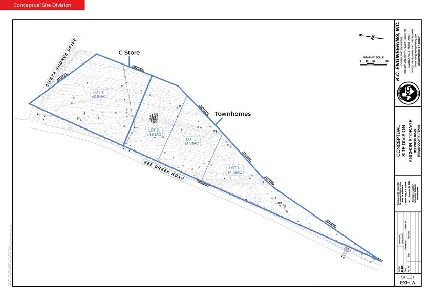 The total site land area consists of 5.43-acres and affords direct frontage and access along Bee Creek Road and Siesta Shores Road.