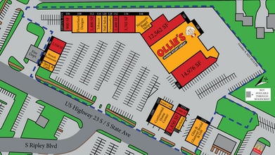 - Le centre bénéficie d'une excellente exposition à l'US-23 pour un trafic de plus de 10 000 véhicules par jour et une signalisation est disponible.