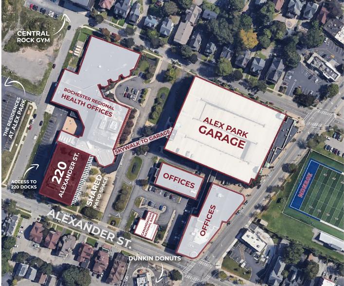 This medical/office building is home to RRH and offers direct access to an attached parking garage and an on-site café for added convenience. Located within the Alex Park campus on Alexander St., steps from Park Ave.
