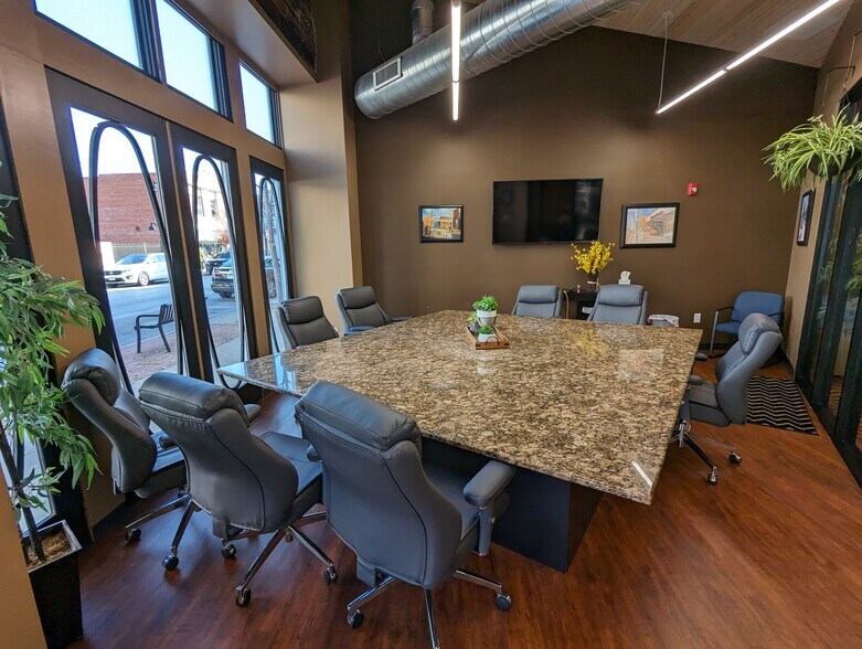 Suite H : 4 760 pieds carrés au total d'espaces de bureaux meublés magnifiquement rénovés au deuxième étage Deuxième étage. Divisible par 1 401 pieds carrés et 3 359 pieds carrés Tarif de location : 16$ par pied carré (service complet) Le locataire est responsable de la conciergerie, de la communication et de l'informatique Entrée de la rue W. Main dans le foyer sécurisé Accès par ascenseur ou escalier au deuxième étage 7 bureaux privés 42 cabines Une toilette privée conforme à l'ADA et des toilettes communes Cuisine