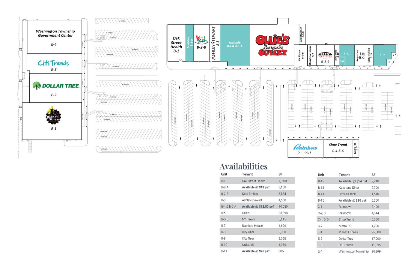 There are currently multiple spaces available that range from +/- 606 to 5,250 SF. Anchored by national retailers such as Citi Trends, Dollar Tree, Rainbow, Planet Fitness, Napa Auto Parts, and Ollie's Bargain Outlet.