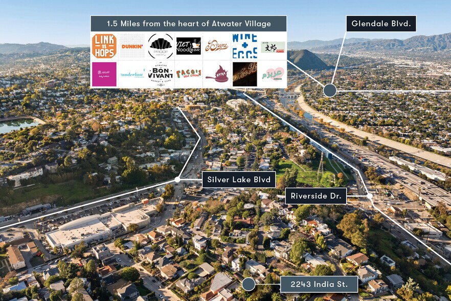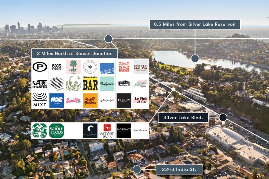 - Silver Lake Spanish-style duplex located 0.5 miles from The Reservoir, adjacent to Atwater Village, and north of Sunset Blvd. (2 Miles)