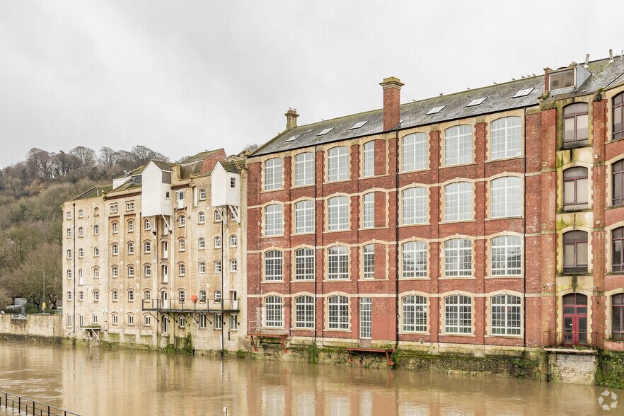 Camden Mill and the Bayer Building comprise two interlinked former mill buildings located directly on the quayside overlooking Bath City Centre and the Bath Quays development area. The layout of the buildings currently provides for a single interlinked office building served by a main reception in Camden Mill fronting Lower Bristol Road. The reception area leads to a dramatic double height entrance hall that provides access to the ground floor of the adjacent Bayer Building. Both Camden Mill and the Bayer Building are lift served and offer a range of characterful open plan and cellular accommodation over a total of 6 floors. All floors benefit from great views over the city to the hills beyond and offer WC and kitchenette facilities on all floors. The Character of each building is very different with Camden Mill offering a high quality post industrial style finish with the Bayer Building offering fully open plan, loft style accommodation with great natural light. The current layout of the building includes a mezzanine cafe area with direct access to a riverside terrace suspending over the River Avon.