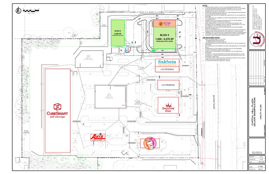 Now Pre-Leasing: Multi-Tenant Retail Opportunities at Capital Hill Plaza Capital Hill Plaza, one of Tallahassee’s most dynamic and rapidly growing retail destinations, is now pre-leasing space within Building 5, a newly constructed 9,350 SF multi-tenant building located along Capital Circle NE. With exposure to over 60,000 vehicles per day, this premier location offers outstanding visibility, accessibility, and the opportunity to join a thriving mix of national and regional retailers. The north end of the building is already leased to Zoom Tan (2,880 SF), leaving 1,000 to 6,470 SF available for lease. The project offers flexible suite configurations, including a highly desirable end-cap space with drive-thru capability—ideal for quick-service restaurants, coffee users, or high-traffic service concepts. Landlord will deliver spaces in a dark shell condition, providing tenants with approximately $65/SF in Tenant Improvement Allowance, allowing for customized build-outs tailored to specific operational needs. Surrounded by strong national co-tenancy including Dunkin’, Smoothie King, Avis/Budget, CubeSmart, and Smile Doctors Orthodontics, Capital Hill Plaza continues to establish itself as a dominant retail hub in Northeast Tallahassee.