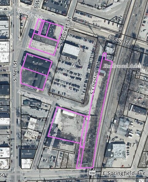 Coldwell Banker Commercial Devonshire Realty (CBCDR) est fière d'offrir en exclusivité à la vente une opportunité incroyable d'acquérir environ 3 307 acres de terrain à bâtir de premier ordre situé à Champaign, dans l'Illinois, à la convergence du centre-ville, de Midtown et de Campustown. Il s'agit vraiment d'une occasion unique d'acquérir un grand site de développement dans un endroit dense avec un zonage flexible, et il peut être possible pour un acheteur d'assembler des parcelles supplémentaires pour créer un site de développement encore plus grand. La propriété se compose de 10 parcelles totalisant environ 144 053 pieds carrés (3 307 acres) et le site est divisé en zones mixtes CB1 — Central Business Urban Fringe et CB2 — Central Business Downtown. Le zonage CB1 permet une hauteur maximale du bâtiment de 85 pieds et le CB2 permet une hauteur maximale de 115 pieds, alors qu'aucune des deux classifications de zonage n'impose de recul, de réserve d'espace ouvert (OSR) ou de ratio plancher/surface (FAR). Il y a 8 bâtiments vacants sur les parcelles construites entre 1915 et 1980. Les tailles des bâtiments sont indiquées à la page 4 sous Informations sur les parcelles.