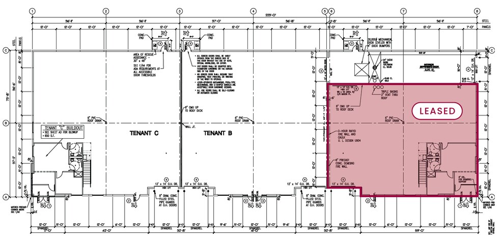 + Total Available: Unit C: 6,840-13,050 SF + Office: 800 SF Mezzanine Storage Above Office NOT Included in SF + Clear Height: 21’ + Loading: 2 Drive-In Doors (12’x14’), 1 interior Dock with Leveler (common if multi-tenant) + Parking: 23 Vehicles + Zoning: Manufacturing